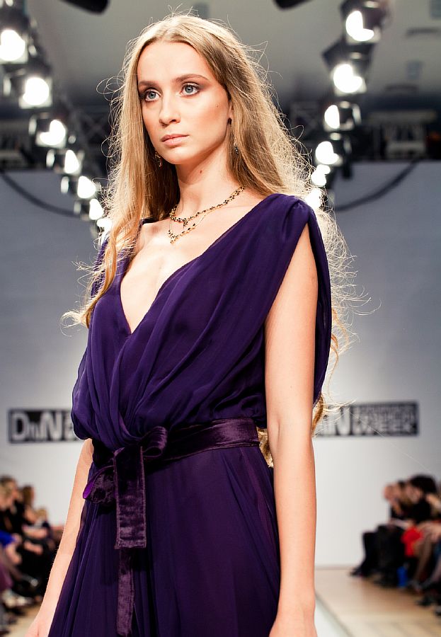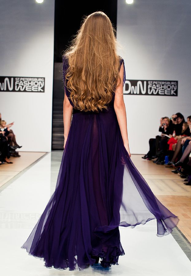 Эксклюзивная модель из коллекции модного Дома Iya Yots – эффектное вечернее платье в пол, созданное из шифона, который изумительно струится на шелковой подкладке. Платье отличается ярким колоритным фиолетовым цветом, лиф изысканно украшен драпировками. Юбка состоит из трех шифоновых лепестков, раскрывающихся при походке.