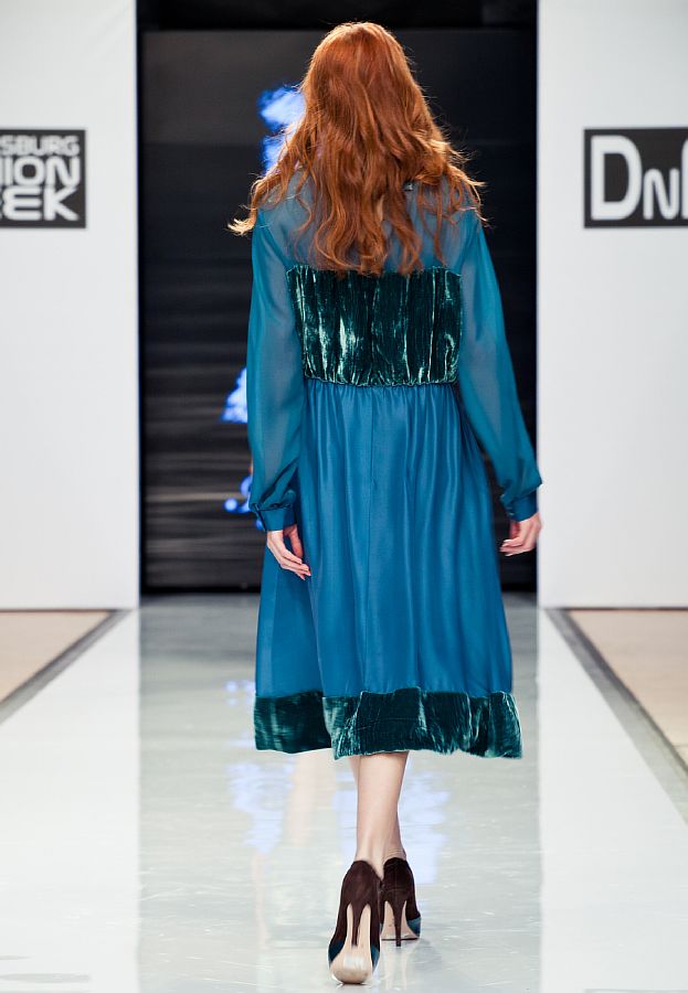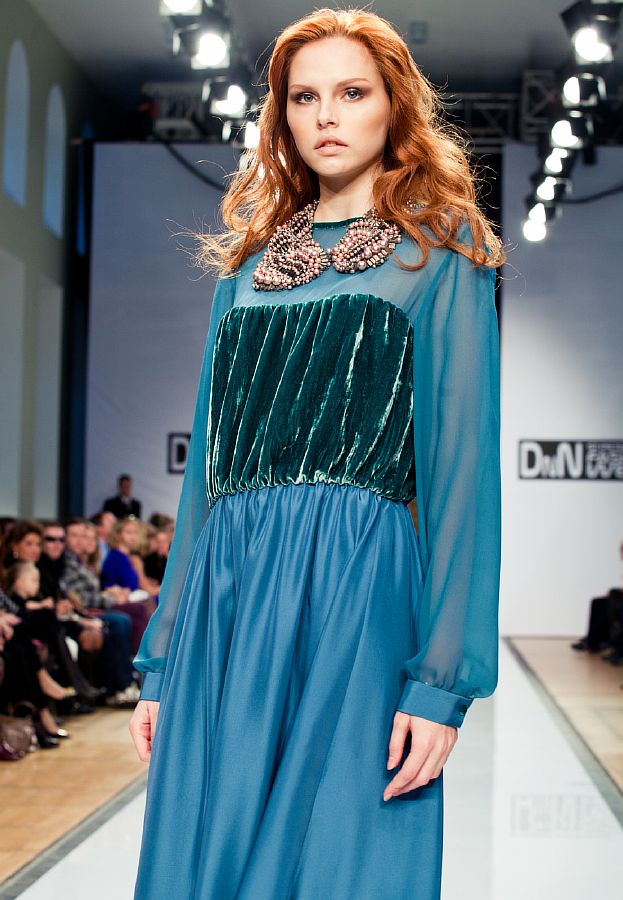 Эксклюзивная модель из коллекции модного Дома Iya Yots – эффектное шелковое платье изумительного нежного бирюзового цвета. Платье выполнено в сочетании тканей трех разных фактур - шифона, сквозь который можно увидеть линию плеч и рук, бархата, придающего дополнительный лоск и шелка, из которого создана юбка.
