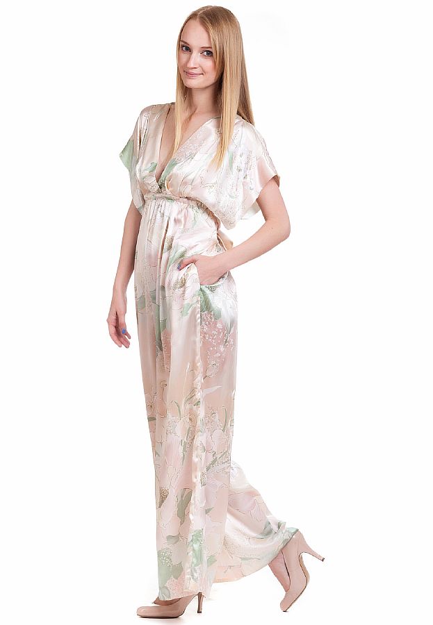 Состав: 100% шелк. Благодаря высокому качеству шелка, комбинезон не мнется, как свойственно всем натуральным тканям.