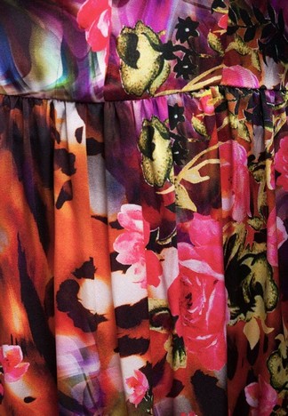 Эксклюзивная модель из коллекции модного Дома Iya Yots – яркое платье, как для "особого выхода", так и для повседневного гардероба. Модель отличается выразительным цветочным принтом, сочетающим красно-малиновые, синие и графитовые цвета. Платье - отрезное по талии, имеет изящные складки на юбке, верх застегивается на супатную застежку (скрытые пуговицы), рукава длиной в 3/4.