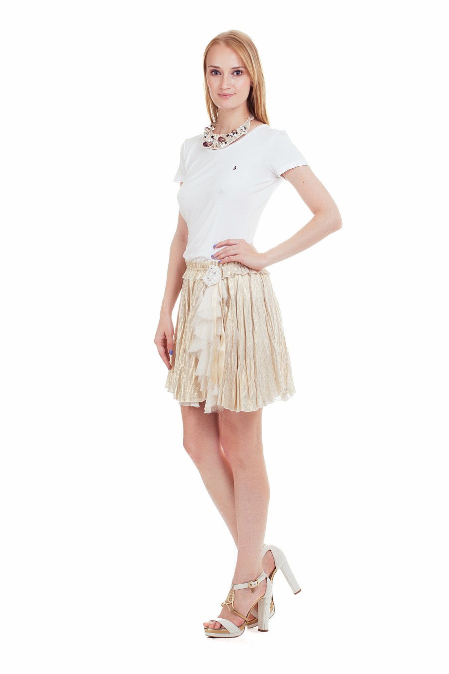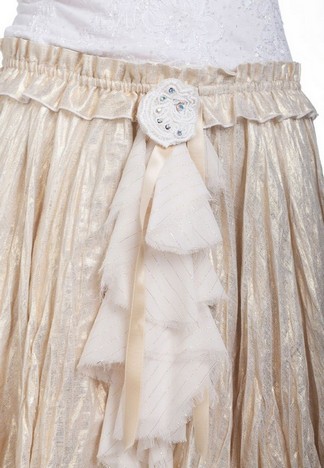 Эксклюзивная модель из коллекции модного Дома Iya Yots – эффектная и обаятельная юбка с множеством дизайнерских "изюминок", которые придают модели шарм эксклюзивности. Золотистое напыление, декор кружевом по поясу, фигурный срез низа, драпированная льняная ткань, декор кружевным цветком и лентой, выполненной в стиле воротника "жабо"... в этой юбке сочетается оригинальность и изысканность, которая подчеркнет особенность вкуса ее обладательницы.