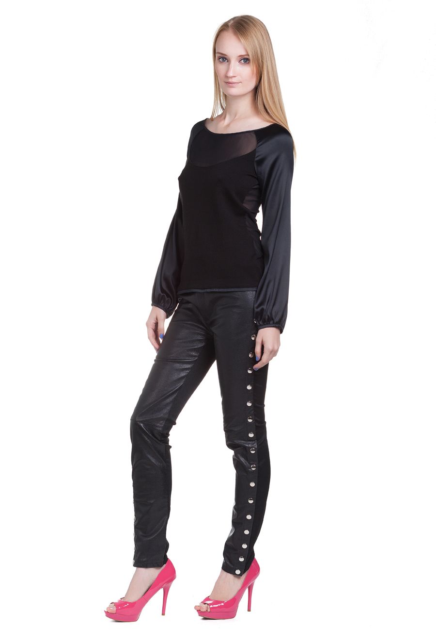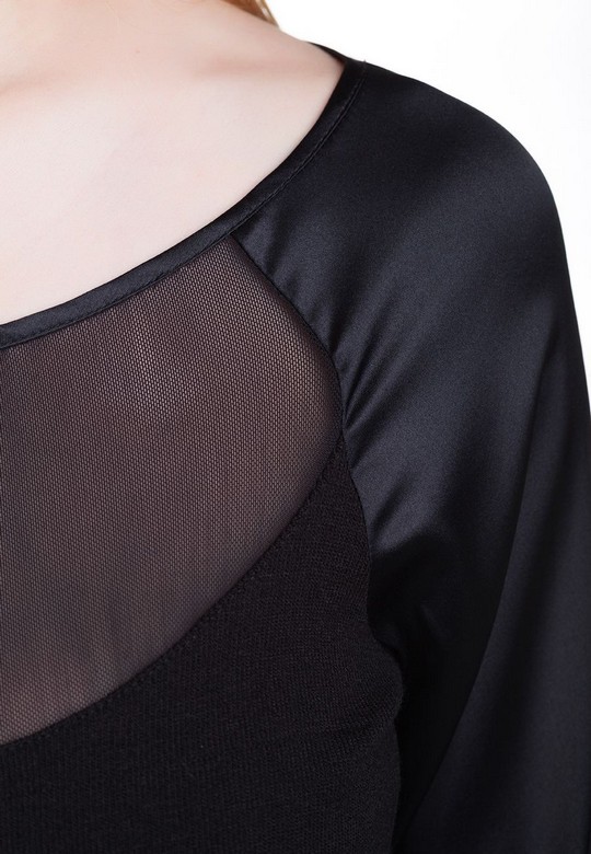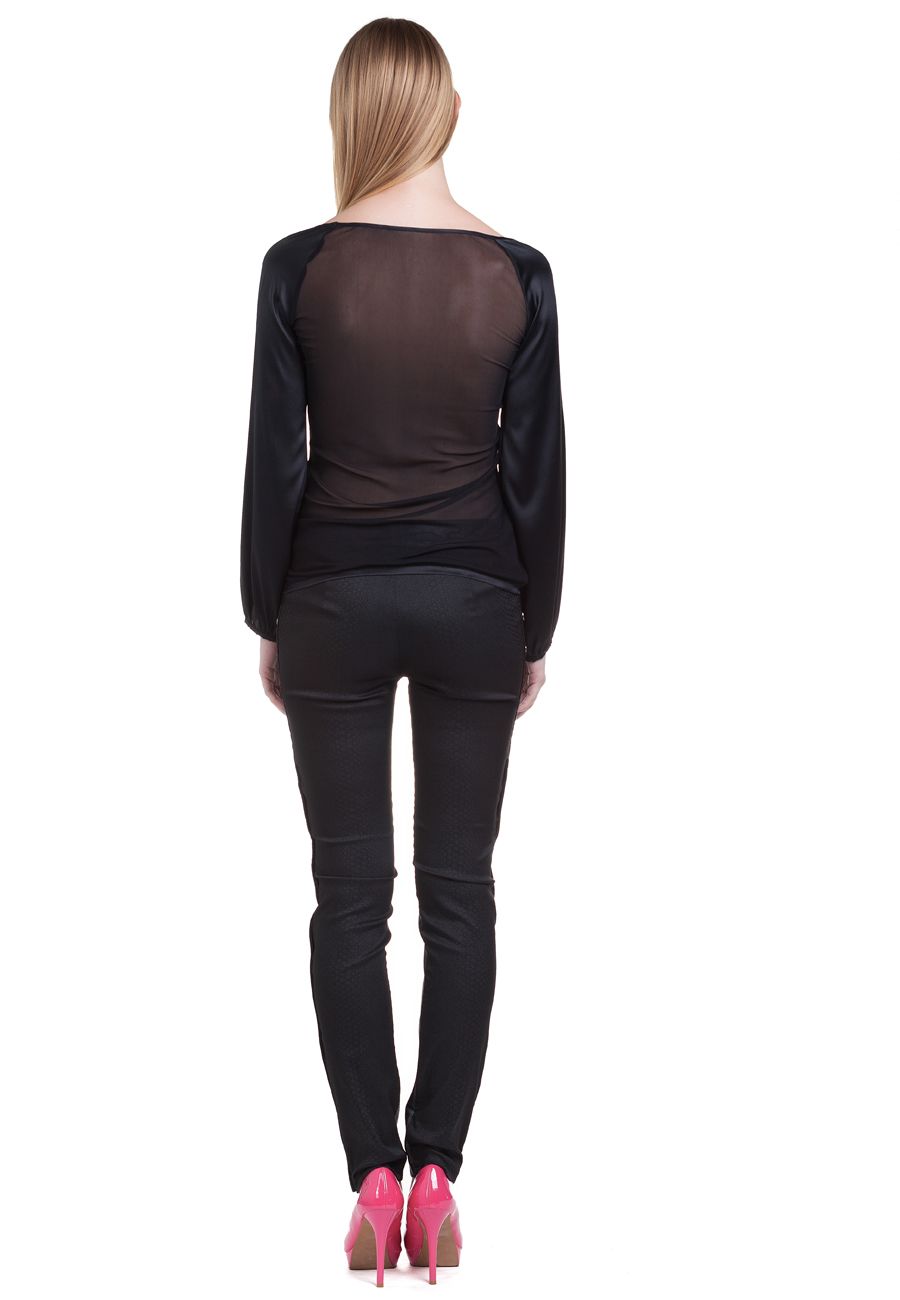 Эксклюзивная модель из коллекции модного Дома Iya Yots – изящная и стильная блуза из черного трикотажа с прозрачной кокеткой и длинными рукавами, выполненными из струящегося шелка. Еще один дизайнерский изыск в этой модели - спинка из материала "мягкая сетка", которая выполнена в стиле кокетки. Элегантная и видная модель станет прекрасным дополнением не только повсеневного и молодежного, но и делового гардероба, а также отличным выбором для особого выхода.