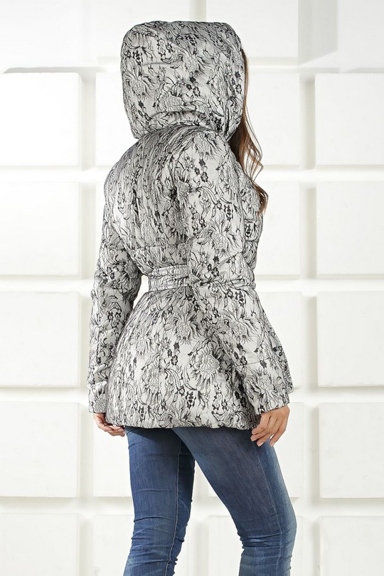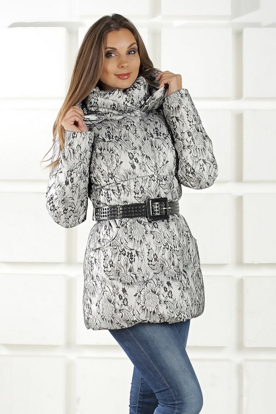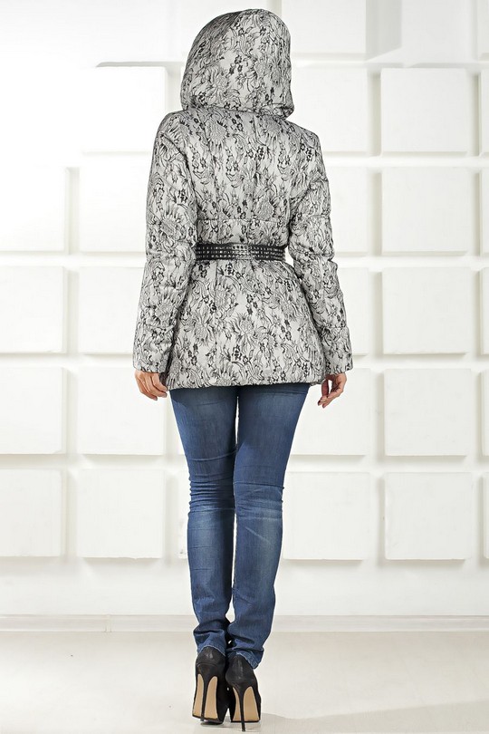 Модель приталенного силуэта, с объемным воротником-стойкой и капюшоном (не отстегивается).