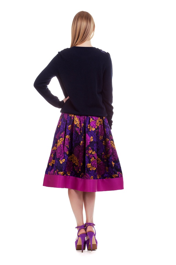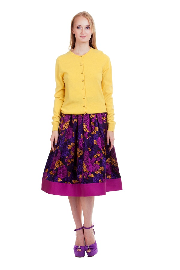 Расширяющийся книзу силуэт юбки зрительно делает акцент на талии, делая ее визуально еще тоньше.