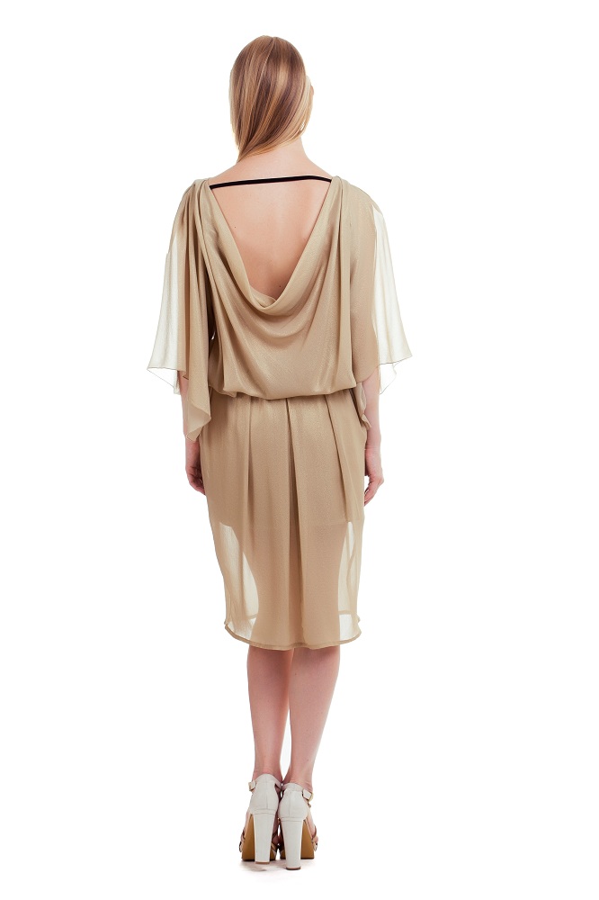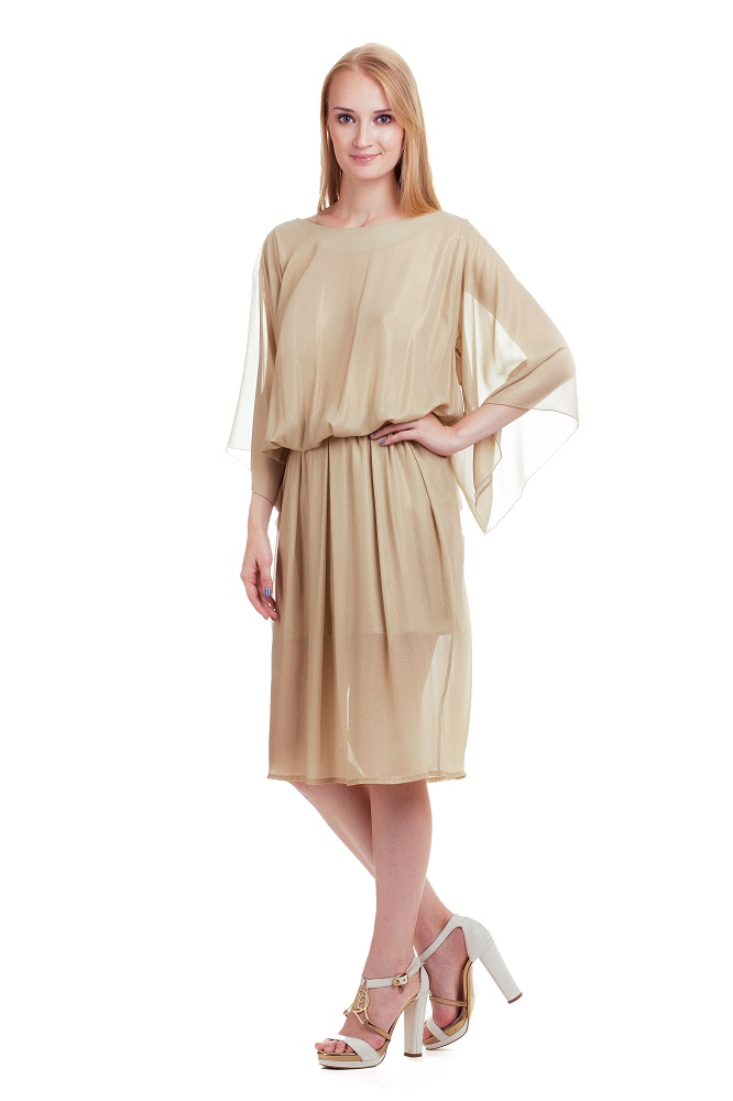 Платье из нежнейшего шелкового шифона с золотым напылением, с рукавами-кимоно.