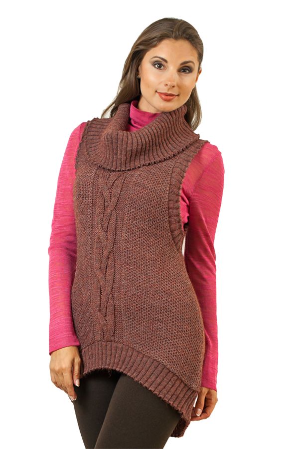 Эффектная, выразительная вязаная туника - модель из новой коллекции модного Дома STOFF. Интересное и необычное изделие отличается асимметричным оригинальным срезом низа, роскошным воротником, широкой резинкой по низу, а также ярким узором "косы" посередние переда. Туника выполнена из качественной итальянской пряжи.