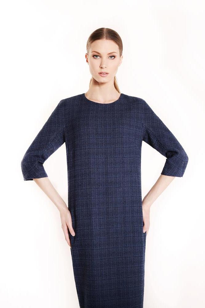 Платье-футляр прямого силуэта с рукавом 3/4 и вырезом под горло. Оптимально для любого дресс-кода и как базовое платье в каждом гардеробе. Для деловых поклонниц классического стиля.