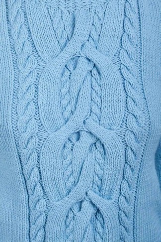 Эксклюзивная модель из коллекции модного Дома Iya Yots – свитер нежного чарующего небесно-голубого цвета. Модель представляет собой ручную работу, отличается эффектным и выразительным узором - роскошной косой по центру передней полочки. На манжетах и по низу - резинка.