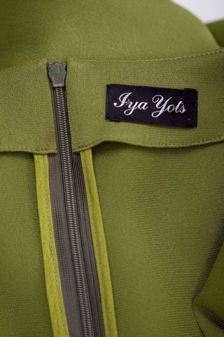 Детали: платье застегивается на потайную молнию, рукав три четверти, несъемный эластичный пояс-резинка с золотистой металлической пряжкой. Эксклюзивная внутренняя отделка швов шелком позволяет наслаждаться высоким качеством изделия как снаружи, так и внутри.