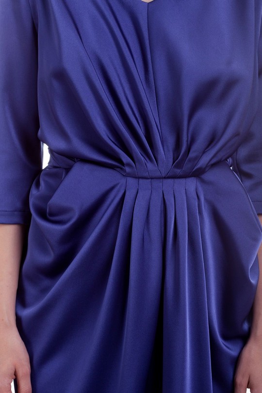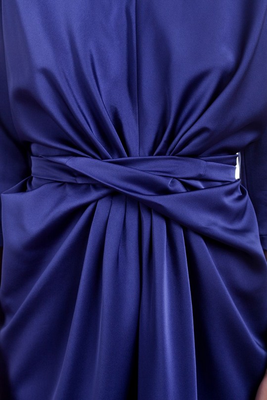 Эксклюзивная модель из коллекции модного Дома Iya Yots – платье прилегающего силуэта с V-образным вырезом горловины. Модель выполнена из струящегося плотного шелка, который подчеркивает изысканность роскошных драпировок модели. Сложный и эксклюзивный крой создает уникальную формулу, позволяющую подобрать эту модель для любого типа фигуры. Драпировки платья образованы за счет перекрестного узла, завязанного в области талии, что позволяет создать неповторимый эффект подвижности складок. Модель отлично подойдет для "особого случая" и романтического свидания, послужит хорошим выбором и для делового гардероба