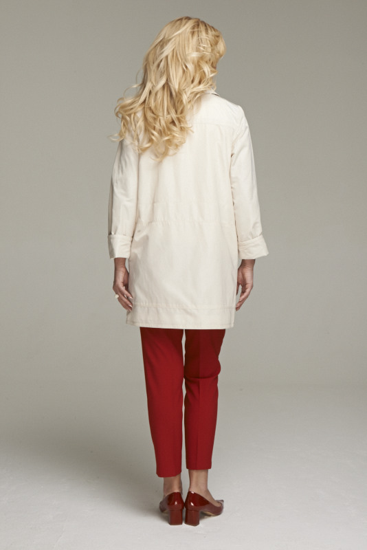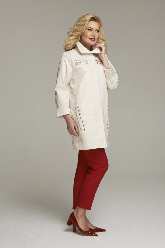 Однобортный плащ прямого силуэта, из мягкой плащевой ткани с добавлением хлопка, на подкладке. Модные детали украшает фурнитура цвета белое золото. Современный образ можно создать подвернув рукава на ¾. Плащ эффектно выглядит как с обувью на каблуке, так и с балетками.