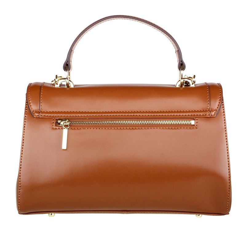 Женская сумка DISPACCI рыжего цвета. Выполнена из натуральной кожи. Цвет фурнитуры - светлое золото. Сумка застегивается на общий клапан. В комплекте имеется наплечный ремень-цепочка. Маленькая сумочка-саквояж заняла достойное место в моде осень-зима 2013-2014, выполнена в строгой палитре тонов, прекрасно дополнит как повседневный, так деловой образ женщины.