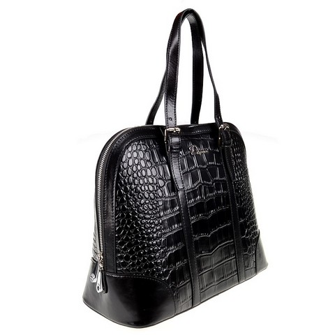 Женская сумка DISPACCI черного цвета. Выполнена из натуральной кожи с тиснением под рептилию. Цвет фурнитуры - серебро. Сумка закрывается на общую металлическую молнию , внутри имеется два боковых кармана на молнии, и карман для мобильного телефона и мелочей. На дне имеются ножки. Модель вмещает формат A4. Пустая сумка хорошо держит форму. Модель имеет две ручки. Высота ручек - 16 см. Сумки из кожи рептилий несравненный лидер по популярности в мире сумок! Эта модель сумки прекрасно подойдет к классическому и повседневному образу, сделает ваш образ стильным и элегантным!