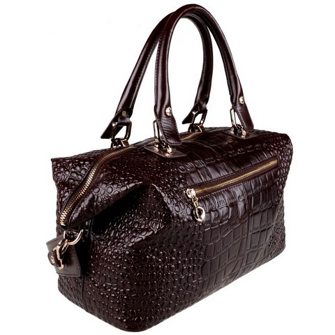 Женская сумка DISPACCI коричневого цвета. Выполнена из натуральной кожи. Цвет фурнитуры - золото. Сумка закрывается на общую металлическую молнию, имеет боковой карман на молнии. Внутри одно большое отделение, имеются два кармана на молнии, и кармашки для телефона и мелочей. Модель имеет две ручки. Высота ручек - 14 см. В комплекте имеется наплечный ремень, максимальная длина ремня 110 см. Сумка из кожи рептилии несравненный лидер по популярности в мире сумок. Сумка принимает разную форму за счет гибкости и мягкости кожи. Эта модная модель красивая и элегантная, подойдет практически под любой образ и любой возраст своей обладательницы. Смотрится дорого и очень эффектно! Осталось только подобрать цвет!