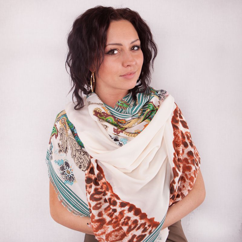 Эксклюзивный палантин, выполнен ручным методом нанесения рисунка на ткань. Яркий принт , приятная ткань не оставит Вас равнодушными к данному палантину. Размер палантина позволяет носить его и , как парео.