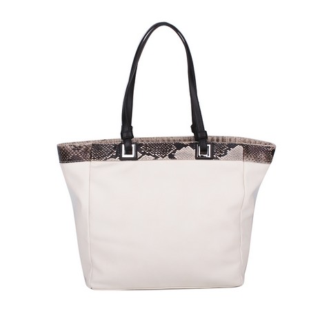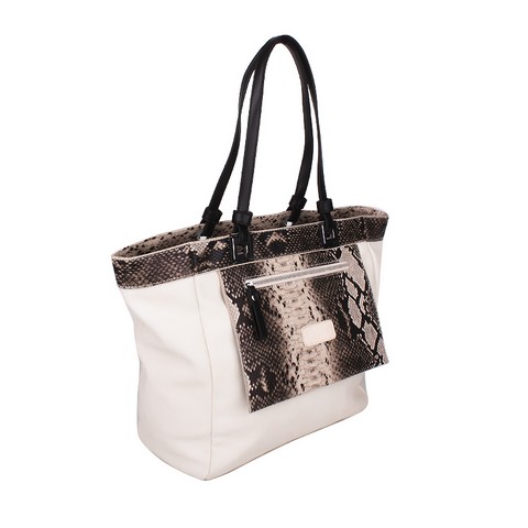 Женская сумочка Dispacci выполнена из гладкой эко-кожи, контрастная отделка под кожу питона. Сумка имеет одно большое отделение. Внутри карман на молнии, открытый карман и для мобильного. Замок пластиковая молния. Цвет фурнитуры - серебро. Сумка держит форму. Вмещает формат А4. Высота ручек позволяет носить сумку на плече.
