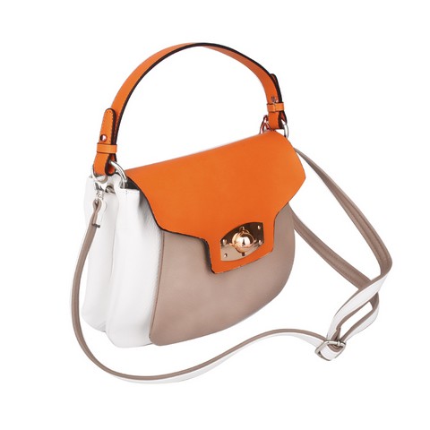 Женская сумочка Dispacci выполнена из мягкой эко кожи. Клапан сумки выполнен из натуральной кожи. Сумочка закрывается на декоративный металлический замок. Сумка имеет три отделения. Внутри карман на молнии, карман для мелочи и мобильного. Цвет фурнитуры-золото. В комплекте две ручки, короткая и длинная.