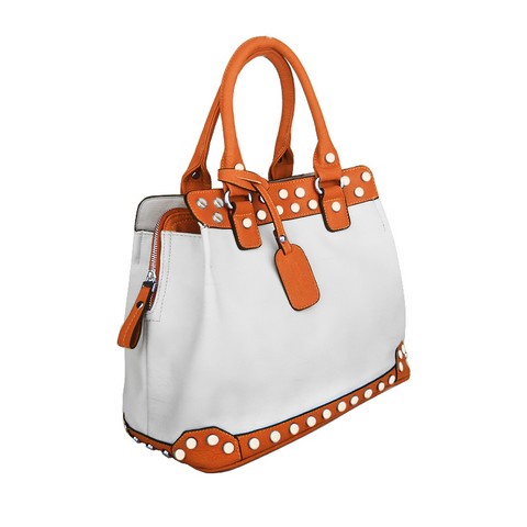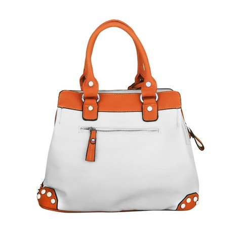 Женская сумочка Dispacci выполнена из мягкой эко кожи. Сумка имеет три отделения одно из которых закрывается на металлическую молнию, а два отделения закрываются на металлические кнопки. В отделении по середине имеется карман на молнии, карман для мелочи и мобильного. На оборотной стороне сумки имеется карман на молнии. Металлические шайбы -модная деталь сезона весна-лето 2013 года. Цвет фурнитуры золото. Высота ручек позволяет носить сумку на плече.