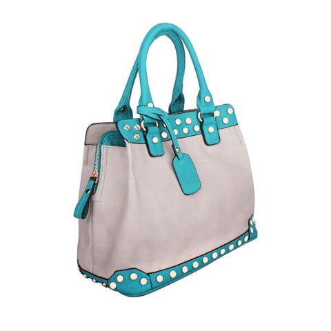 Женская сумочка Dispacci выполнена из мягкой эко кожи. Сумка имеет три отделения одно из которых закрывается на металлическую молнию, а два отделения закрываются на металлические кнопки. В отделении по середине имеется карман на молнии, карман для мелочи и мобильного. На оборотной стороне сумки имеется карман на молнии. Металлические шайбы -модная деталь сезона весна-лето 2013 года. Цвет фурнитуры золото. Высота ручек позволяет носить сумку на плече.