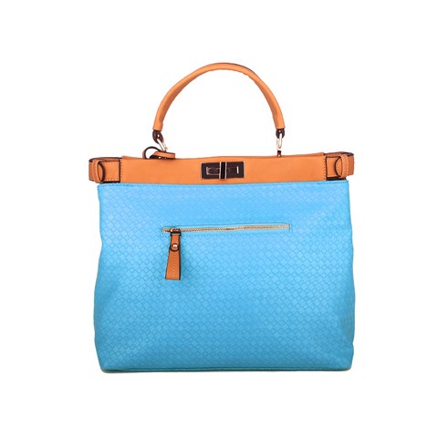 Плетеная женская сумочка Dispacci выполнена из мягкой эко кожи. Сумка имеет два отделения, которые закрываются на металлические замки. В одном из отделений имеется карман на молнии, в другом отделении карман для мелочи и мобильного. На оборотной стороне сумки карман на молнии. Форма- саквояж-модная деталь сезона весна-лето 2013 года. Цвет фурнитуры золото. Сумка держит форму. Вмещает формат А4.