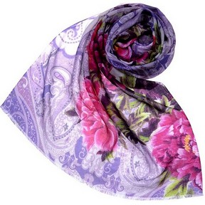 Палантин женский лилового цвета, от бренда DISPACCI. Выполнен из натуральной тонкой высококачественной шерсти. Обработка края - ручное бахромирование по короткой стороне. Яркий оригинальный принт сочетает в себе цветочные и восточные орнаменты, что очень модно в этом сезоне, а прекрасно подобранные цвета сделают этот палантин неотъемлемой частью вашего гардероба!