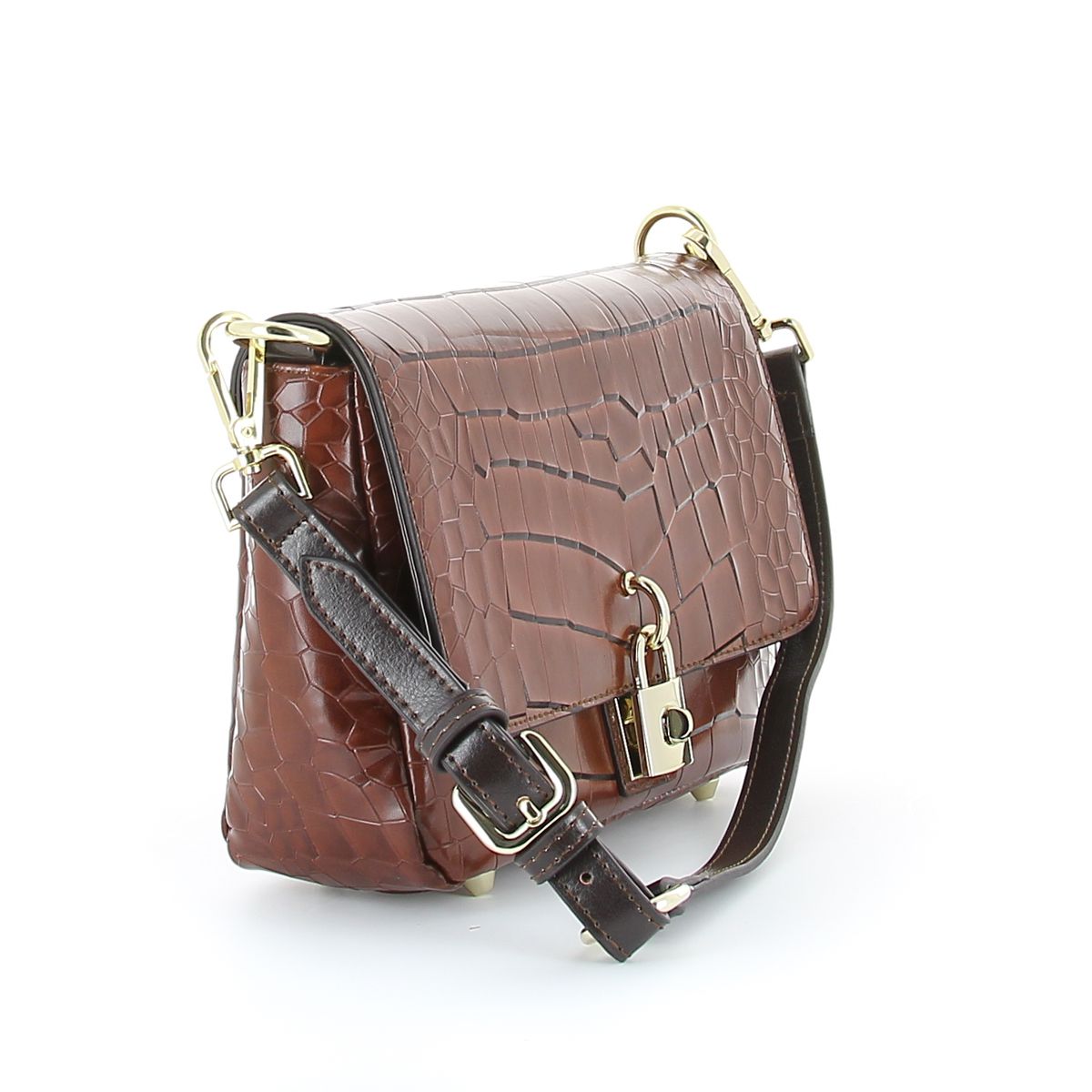 Женская сумочка DISPACCI, из натуральной кожи коричневого цвета. Милые изящные сумочки на длинном ремне, подойдут изысканным любительницам прогулок налегке! А выделка кожи под рептилию в сочетании с яркими цветами, не оставит равнодушным представительниц прекрасного пола! Цвет фурнитуры - светлое золото. Сумка закрывается на общий клапан с дизайнерским замком и общую металлическую молнию. С внешней стороны сумки имеется боковой карман на молнии. Внутри имеется одно главное отделение, боковой карман на молнии и кармашки для мобильного телефона и мелочей. Прилагается наплечный ремень. Максимальная длина ремня 50 см.