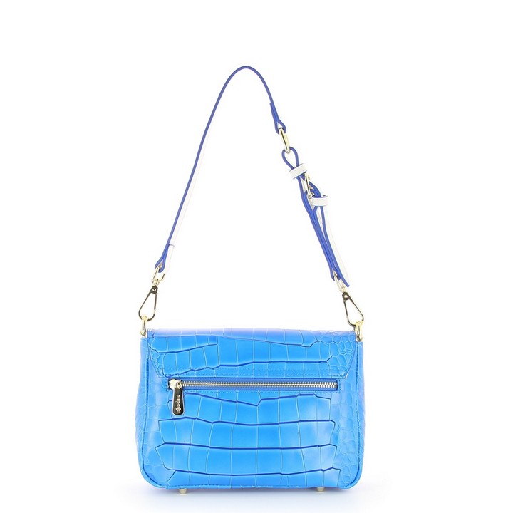 Женская сумочка DISPACCI, из натуральной кожи синего цвета. Милые изящные сумочки на длинном ремне, подойдут изысканным любительницам прогулок налегке! А выделка кожи под рептилию в сочетании с яркими цветами, не оставит равнодушным представительниц прекрасного пола! Цвет фурнитуры - светлое золото. Сумка закрывается на общий клапан с дизайнерским замком и общую металлическую молнию. С внешней стороны сумки имеется боковой карман на молнии. Внутри имеется одно главное отделение, боковой карман на молнии и кармашки для мобильного телефона и мелочей. Прилагается наплечный ремень. Максимальная длина ремня 50 см.