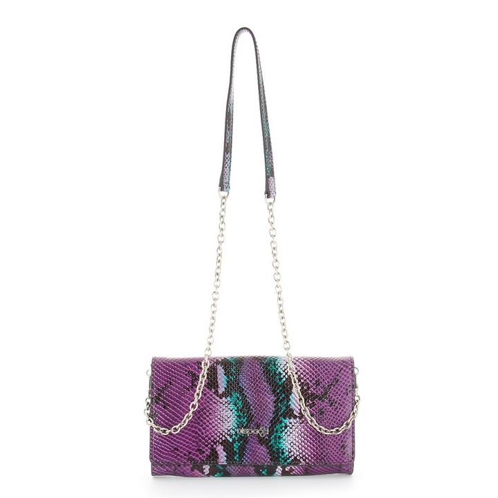 Женская сумочка DISPACCI сиреневого цвета. В коллекции весна-лето 2014 почетное место занимают клатчи и маленькие сумочки! Прекрасный вариант для тех, кто привык брать с собой на прогулку минимум вещей. Вся сумочка выполнена из натуральной кожи с выделкой под питона. Такой клатч может стать удобным аксессуаром на каждый день и нарядным акцентом в клуб! Прилагается длинный ремень цепочка, с вставкой из кожи для удобной носки на плече. Длина ремня 115 см Сумочка закрывается на общий клапан на кнопке. С внешней стороны сумки имеется боковой карман на молнии. Внутри имеется два отделения разделенных средником на молнии, также имеется боковой карман на молнии и кармашки для мобильного телефона и мелочей. Цвет фурнитуры - серебро.