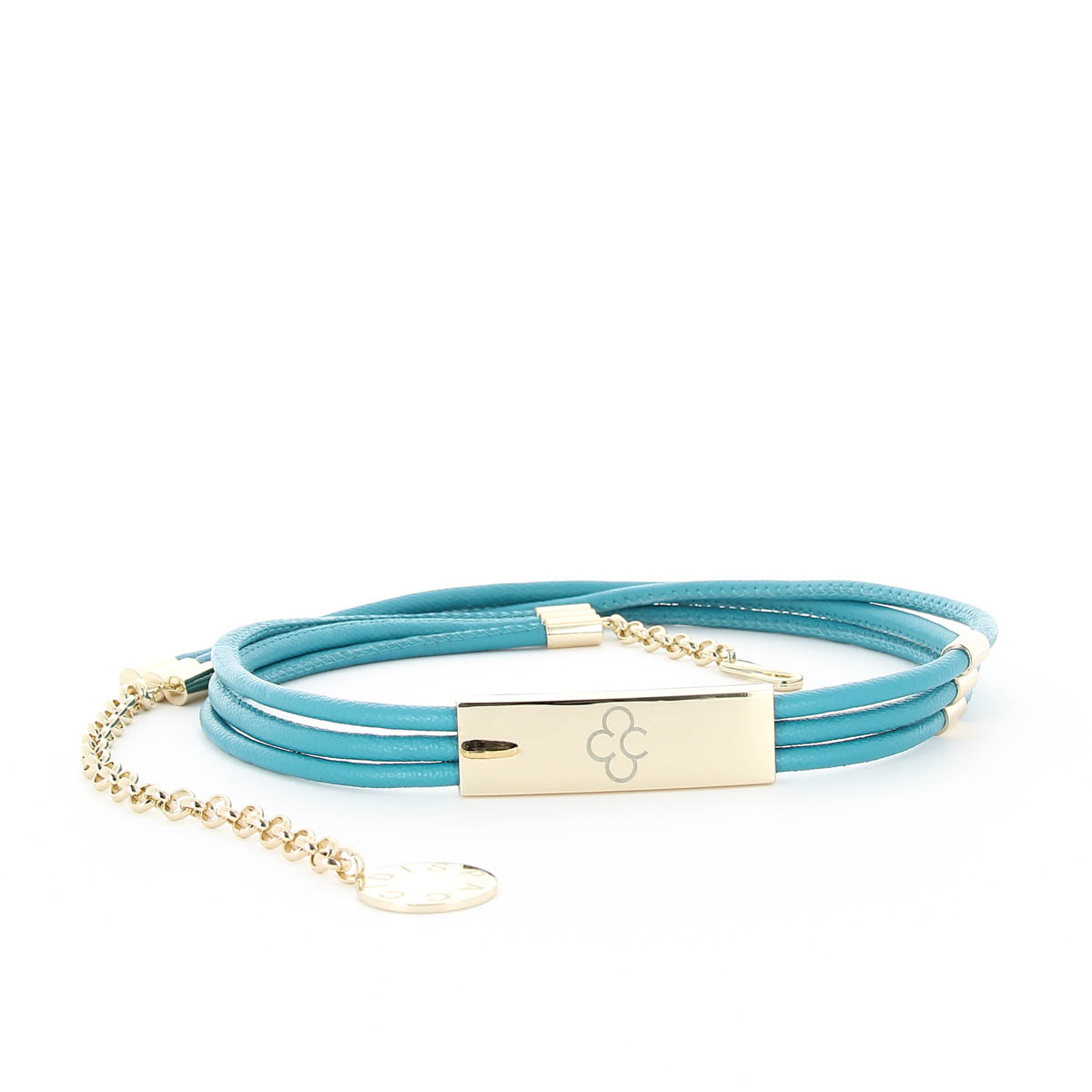 Женский ремень бирюзового цвета из натуральной кожи. Цвет фурнитуры - золото. Хит сезона - необычные ремни! Дизайнеры бренда DISPACCI создали стильный ремень, выполненный из трех ремешков и вставками из металла золотого цвета. Оригинальный акцент вашего образа!