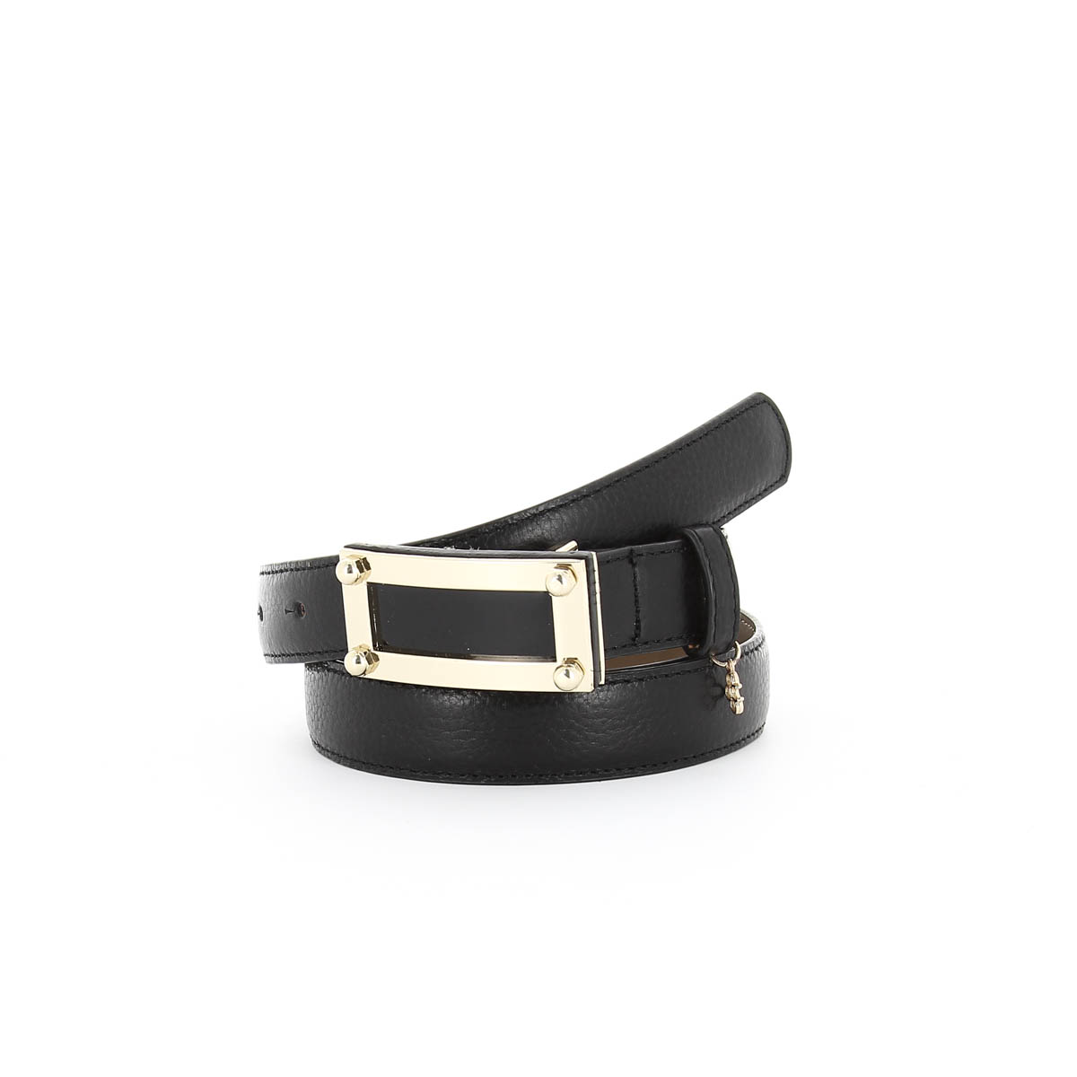 Женский ремень черного цвета из натуральной кожи от бренда DISPACCI. Цвет фурнитуры - золото. Ремень средней ширины, новая дизайнерская пряжка прямоугольной формы с заливкой в цвет полосы! Такой дизайн ремня воплощает в себе красоту и стиль Италии! Незаменимый аксессуар для девушки которая следит за модой!