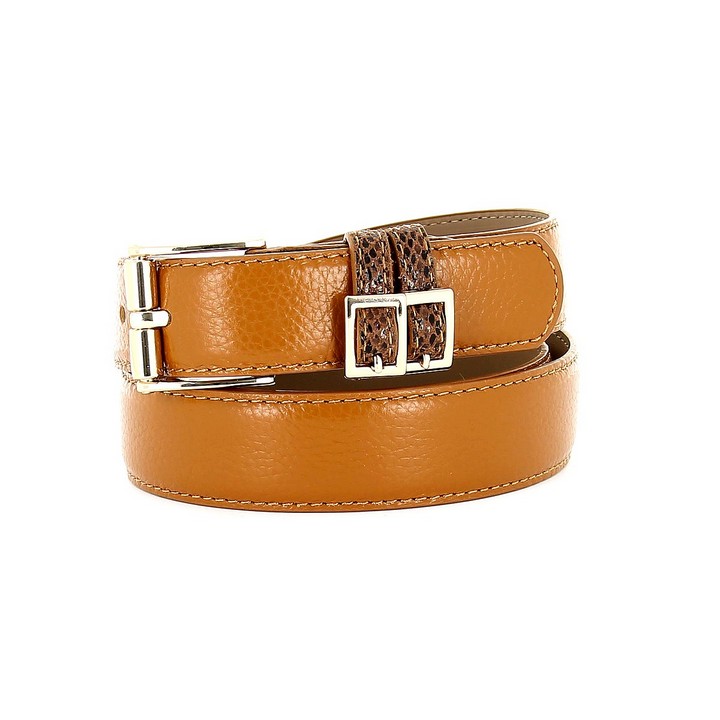 Женский ремень цвета кэмл из натуральной кожи от бренда DISPACCI. Размер регулируется за счет болта. Цвет фурнитуры - золото. Ремень средней ширины, классическая прямоугольная пряжка, а дизайнерский элемент виде двух пряжек с выделкой под питона, смотрится очень оригинально! Такой ремень незаменимый аксессуар для девушки которая следит за модой!