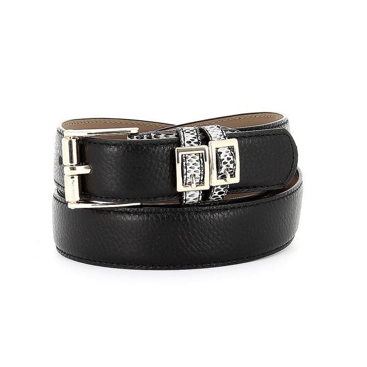 Женский ремень бирюзового цвета из натуральной кожи от бренда DISPACCI. Размер регулируется за счет болта. Цвет фурнитуры - золото. Ремень средней ширины, классическая прямоугольная пряжка, а дизайнерский элемент в виде двух пряжек с выделкой под питона, смотрится очень оригинально! Такой ремень незаменимый аксессуар для девушки которая следит за модой!