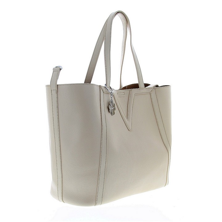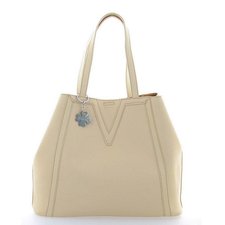 Женская сумочка DISPACCI светло-бежевого цвета. На сезон весна-лето 2014 очень популярны будут сумочки формы трапеции и минимализм в отделке. Сама сумочка выполнена из мягкой высококачественной эко кожи, за счет креплений у основания сумки, может менять форму. Дизайнеры не перестают удивлять нас своими новыми идеями! Две сумки в одной! Прекрасный вариант для тех кто любит удобство и стиль. Внутри сумки еще одна сумка золотого цвета, которая застегивается на общую металлическую молнию, и имеет боковой карман на молнии, и кармашки для мобильного телефона и мелочей, также к ней прилагается наплечный ремень, максимальная длина 110 см. Цвет фурнитуры - серебро. Модель имеет две ручки, высота 20 см.