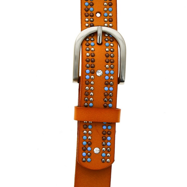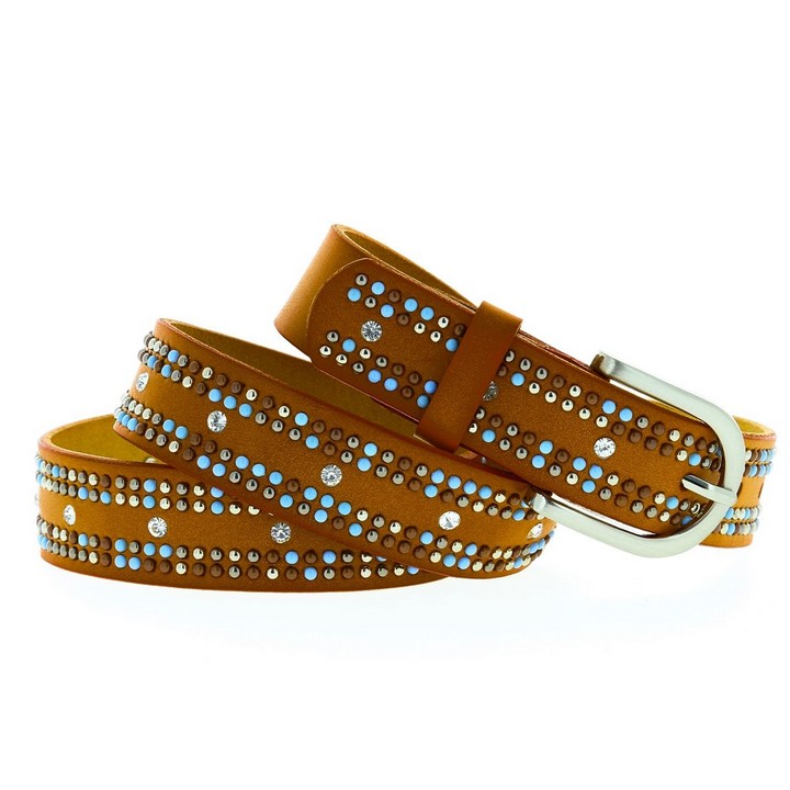Женский ремень бежевого цвета от бренда DISPACCI. Дизайнерский ремень в стиле casual. Гладкая, прямая полоса ремня из натуральной высококачественной кожи, усыпанная стразами, клепками и бусинками. Размер регулируется за счет болта. Цвет фурнитуры - черненое серебро. Ремень невероятно модный аксессуар на сезон весна-лето 2014! Такой ремень найдет достойное место в гардеробе каждой девушки! Прекрасно подойдет к брюкам и джинсам, а также украсит платье или тунику!