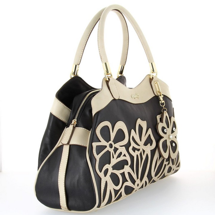 Романтическая коллекция женских сумочек от бренда DISPACCI. Сумочка выполнена в сочетании черного и бежевого цвета. Красивая и в тоже время вместительная сумочка, а невероятно модный акцент здесь это объемная аппликация из цветов! Прекрасно подойдет для весенне-летнего наряда. Сумка имеет три больших отделения, два боковые на кнопках, и главное отделение на молнии. Внутри главного отделения имеются боковой карман на молнии, и кармашки для мобильного телефона и мелочей. Модель имеет две ручки, высота 17 см. Цвет фурнитуры - светлое золото.
