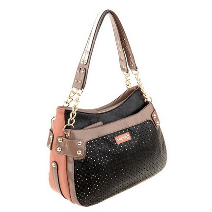 Ультрамодная коллекция женских сумочек от бренда DISPACCI. Удобная, классическая модель, оригинальные ручки - вставки цепочки. Новый дизайн, перфорация в сочетании с лаковыми вставками, именно такая сумочка сделает ваш образ стильным, а многообразие цветов позволит сочетать ее с разной одеждой! Сумка имеет три отделения на металлической молнии, в которых имеются боковой карман на молнии, и кармашки для мобильного телефона и мелочей. Модель имеет две ручки, высота 22 см. Цвет фурнитуры - золото.