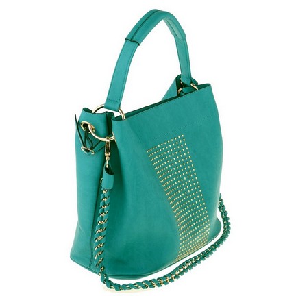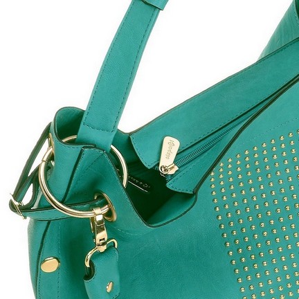 Женская сумка DISPACCI синего цвета. Выполнена из качественной эко кожи. Сумки с клепками сейчас на пике популярности! Очень стильная модель сумочки порадует как молодеж, так и взрослых! Идеальный вариант для тех кто следит за модой! Прекрасно подойдет, к классическому и повседневному образу. Цвет фурнитуры - золото. Сумка закрывается на общую металлическую молнию, имеет одно главное отделение. На дне имеются ножки. В комплекте прилагается маленькая сумочка, которая имеет боковой карман на молнии с внешней стороны, а внутри карман на молнии и кармашки для мобильного телефона и мелочей. Модель имеет одну ручку. Высота ручки - 14 см. Прилагается наплечный ремень интересного дизайна - цепочка с переплетением кожи, длина ремня 70 см.