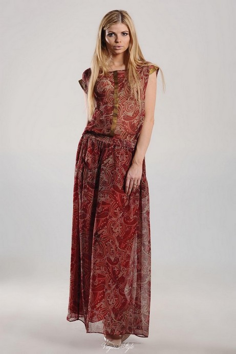 Костюм из двух изделий. Блуза с круглым вырезом горловины, короткие цельнокроенные рукава-крылышки, сборка на кулиске с резинкой по низу, декоративная вставка. Юбка-макси.