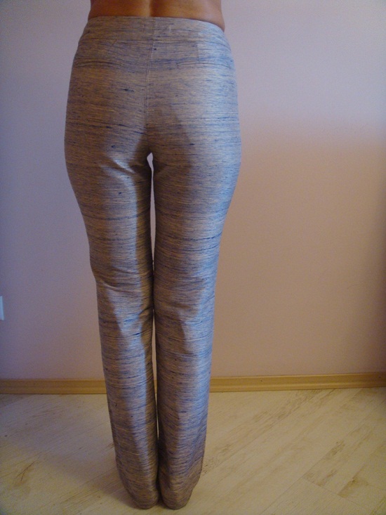 Летние брюки из натурального шелка. Сзади прорезные карманы в рамку. Длина брюк по боковому шву 103 см. В наличии всего 3 размера.