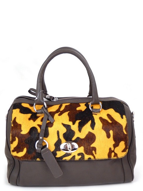 Мягкая кожаная сумка в форме бочонка, цвет серо-коричневый. Спереди- карман на клапане из каваллино ( меха пони) с принтом милитари в желтых тонах. Новая коллекция от итальянского бренда CAPOVERSO. Закрывается на молнию
