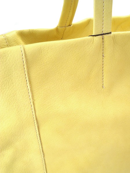 Сумка шопер из натуральной мягкой кожи нежного лимонного цвета, закрывается на молнию. Подкладка - светлая.