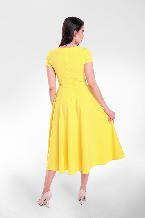 Летнее платье с отрезной юбкой-солнце и коротким рукавчиком с молнией- застежкой на спине. Летящая юбка, комфортная плотная посадка изделия и актуальный цвет делают платье незаменимым в вашем гардеробе в нынешнем сезоне.