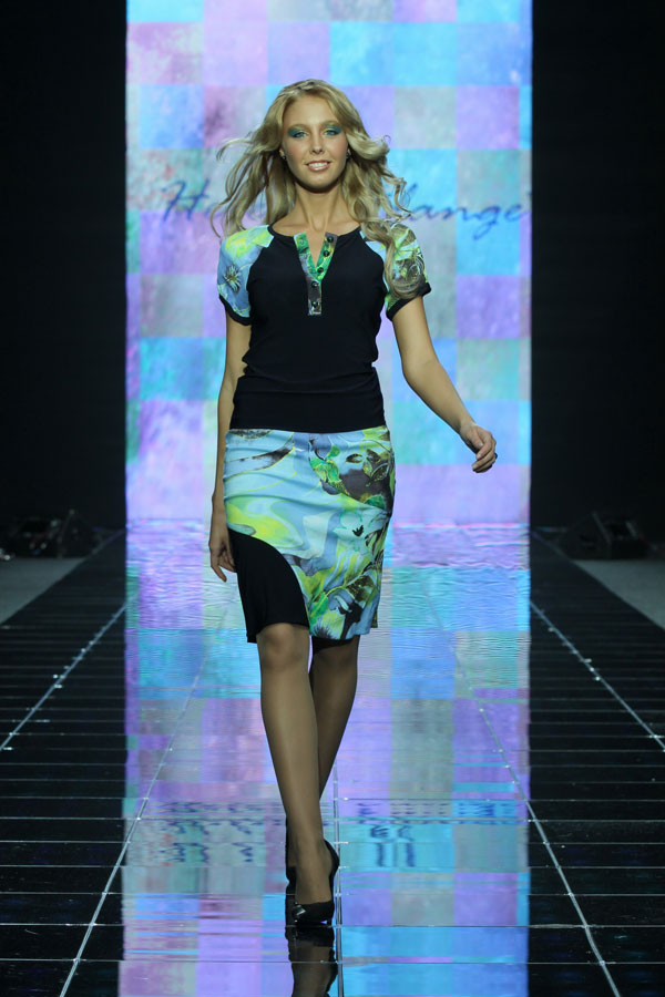 Эту восхитительную летнюю блузку-поло знаменитый модный дизайнер Елена Эланж представила в своей коллекции «Время любить». Данная модель относится к блоку «Синий тропик» и в ней отражены все фантазии мастера о синих тропических лесах, в которых рядом с основным цветом пестрят желтые и зеленые оттенки.