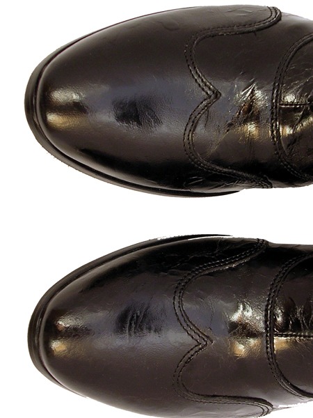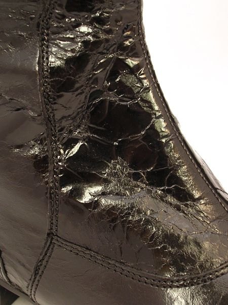 За счет специальной выделки кожи под пергаментную бумагу, кожа сапог смотрится как глянцевая и переливчатая.