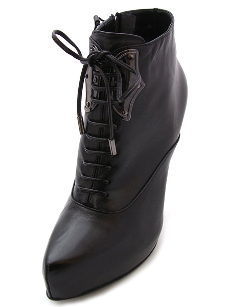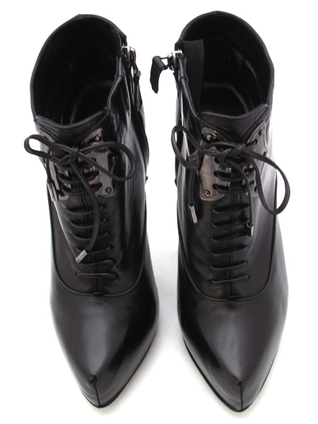 Элегантные чёрные ботильоны с заострённым мыском и шнуровкой.