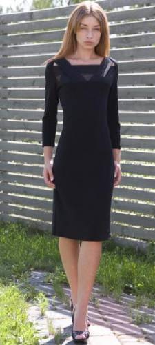 Элегантное трикотажное платье с прозрачными вставками будет отлично смотреться как в офисе, так и на торжественном вечере.