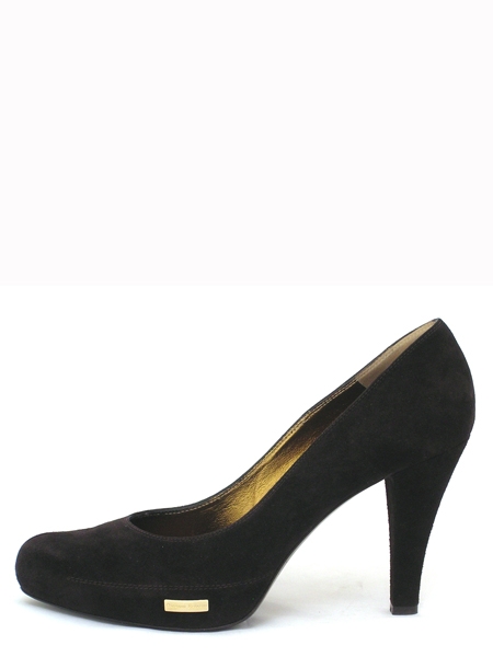 Материал - верх: натуральная замша темно-коричневого цвета, подкладка из натуральной телячьей кожи бронзового оттенка; низ: подошва из натуральной кожи с резиновой профилактикой. Каблук 9 см.