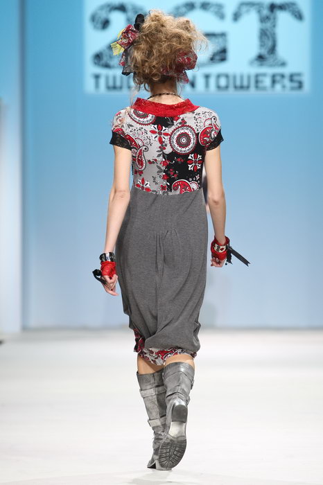 Модное платье длиной по колено и с коротким рукавом. Лиф платья выполнен из яркого материала с оригинальными завитками. Юбка стилизована под широкие бриджи, что делает само платье необычным и эксклюзивным. Подол платья из такого же материала, что и лиф. Ворот платья яркий и кружевной. Удобное, стильное платье для прогулок или же для торжеств.