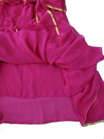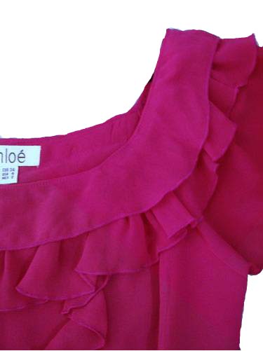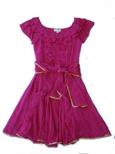 Платье насыщенного малинового цвета, выполнено из полупрозрачного шифона.