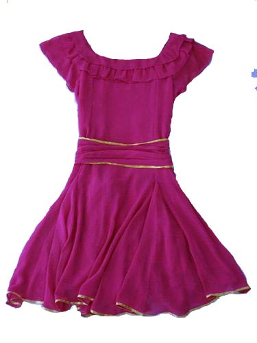 Впереди на лифе платья и по вырезу горловины многослойные оборки-воланы.